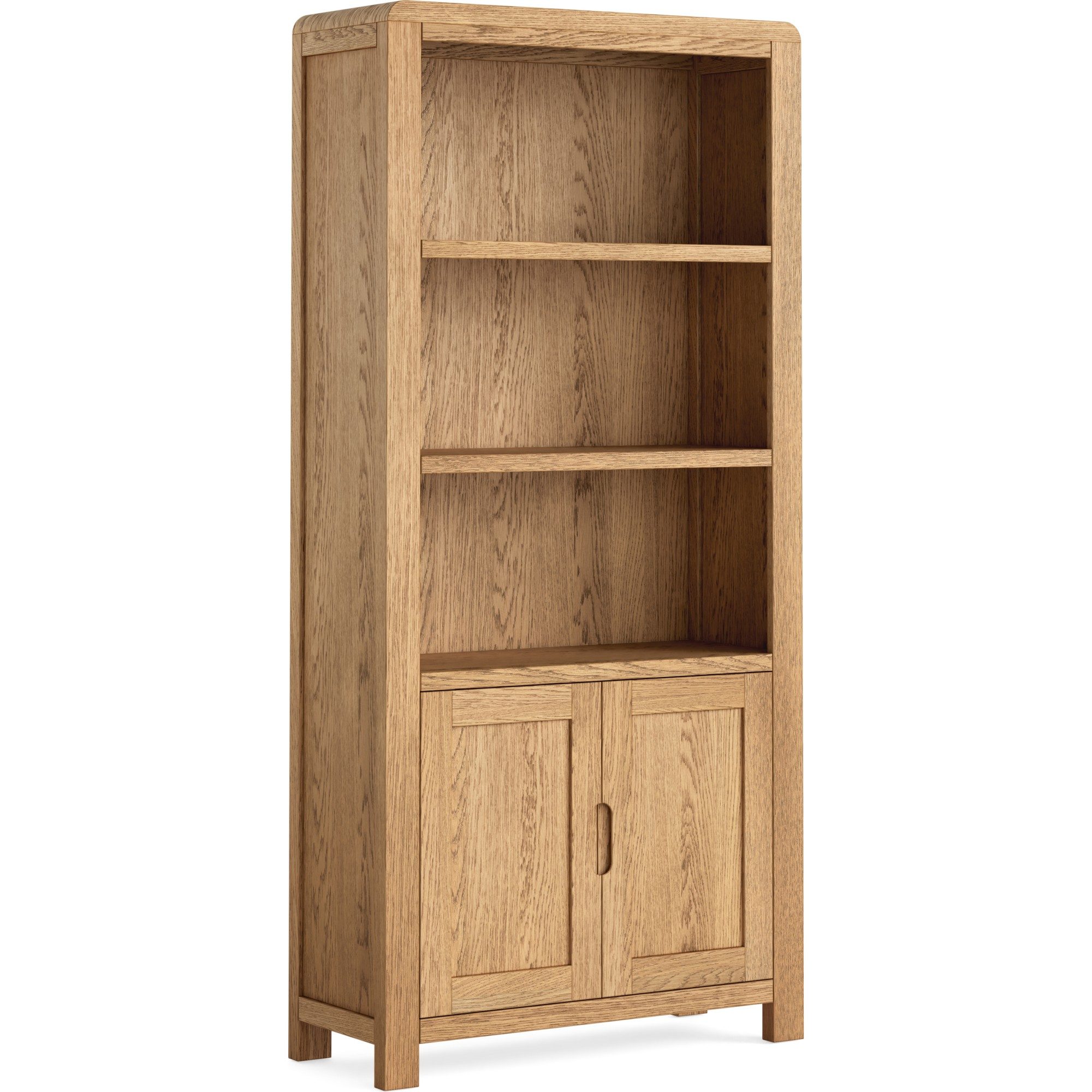 The Baltic Oak Collection showcases modern, handle-less design with chunky butcher’s block tops, smooth curves, and unique natural grain. Finished in clear lacquer for durability and everyday use.
