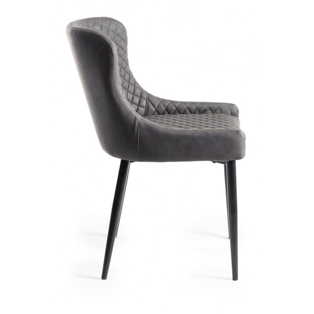 Part of the Metal legged chair collection with its appealing contemporary aesthetic, the Cezanne chair is the perfect addition to any modern dining range. With a choice of dark grey faux leather as well as a selection of colours in velvet, this design has versatility and style. With features such as an elegant tapered back, squared stitched upholstery, and round tapering metal legs- finished in a sand black powder coating- the Mondrian is current, fashionable and affordable.