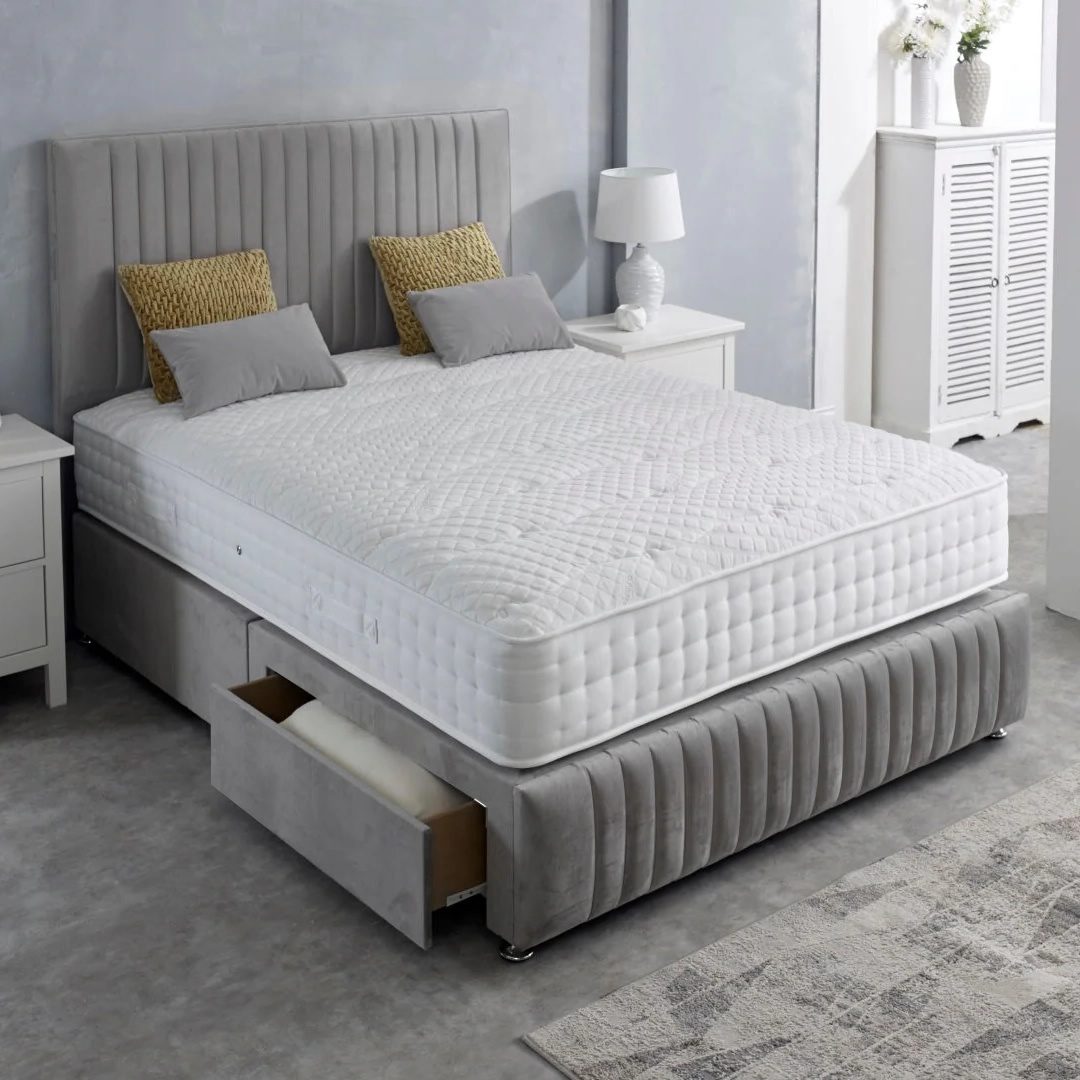 Experience the perfect blend of luxury and support with the Highgrove Astoria 1000 Natural Pocket Divan Bed. Designed for superior comfort, this premium divan set features a luxury stretch fabric cover that enhances air circulation, keeping you cool and refreshed throughout the night.