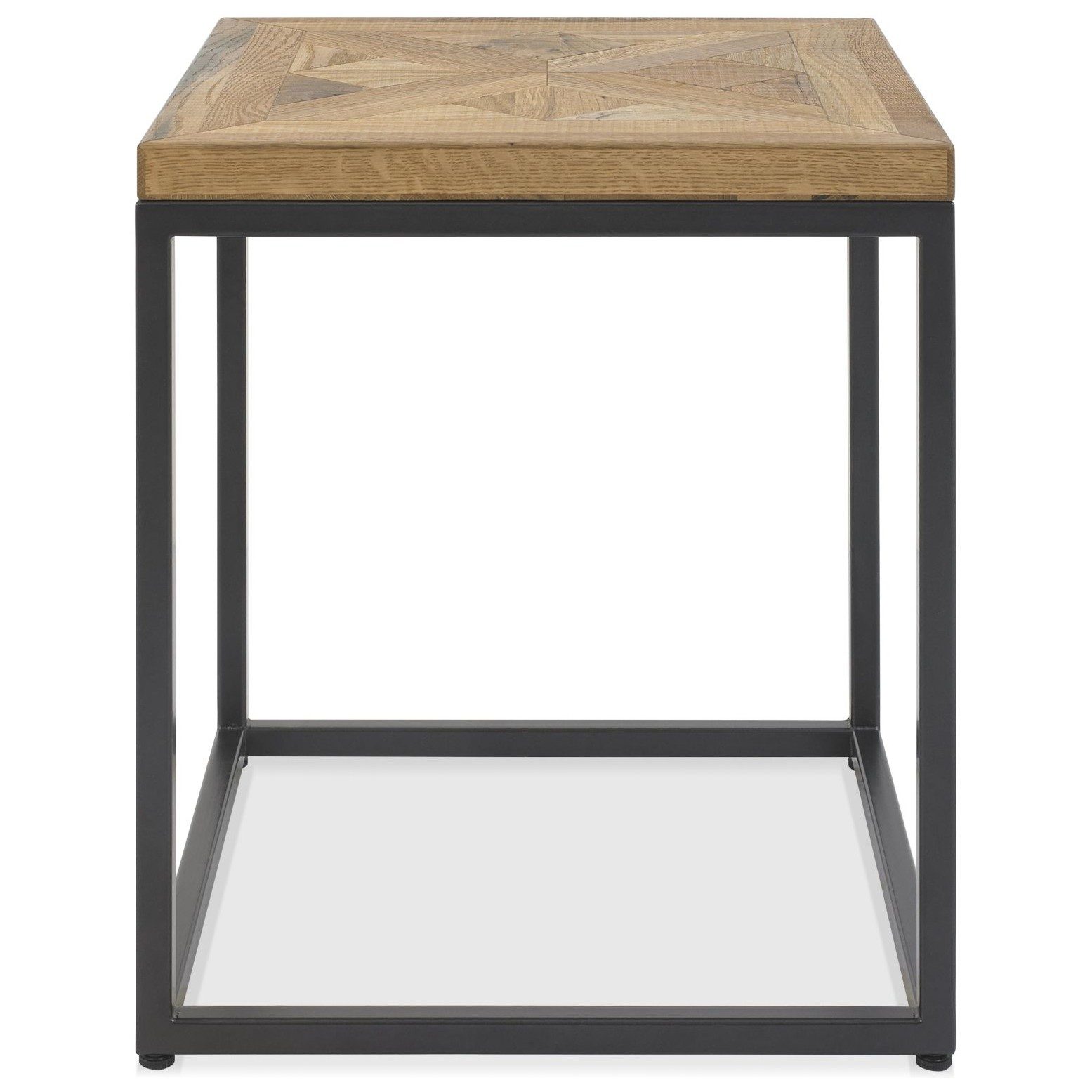 The Indus collection makes a bold statement with its striking design, combining saw-cut oak marquetry tops with a rich 'peppercorn' finished oak veneered frame. Each handcrafted top is wire-brushed and lightly distressed to bring out the natural beauty and varied grain of the oak, creating a rustic character with a wonderfully tactile feel. The unique patterns celebrate traditional craftsmanship while delivering a fresh, contemporary style. Completing the look, each piece is set on a welded black powder-coated metal base, giving the collection an on-trend industrial edge that's perfect for modern living spaces. Robust, stylish, and full of character, Indus is designed to be as durable as it is beautiful, making it the perfect centrepiece for your home.