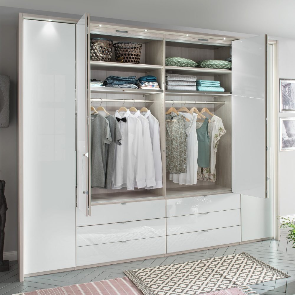 Inside, the layout can be tailored to your storage needs, with adjustable shelving, hanging rails, and optional interior chests providing flexible organisation. For added luxury, select models include built-in soft-close drawers and optional exterior LED lighting, bringing a touch of sophistication and functionality to your bedroom.