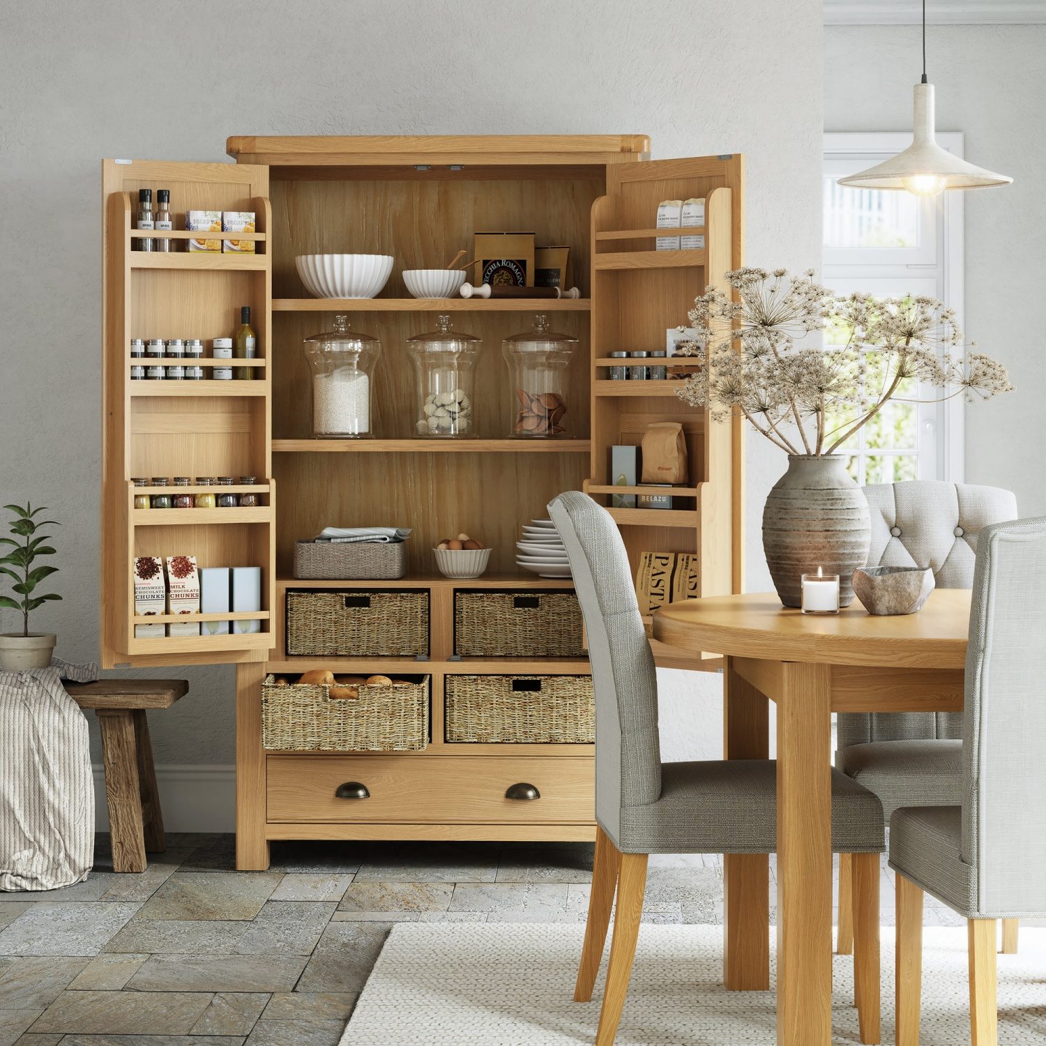 Elevate your dining space with the Lyon Dining Collection, blending country charm and modern elegance. Crafted from solid oak with silver handles, it offers timeless style and lasting durability.