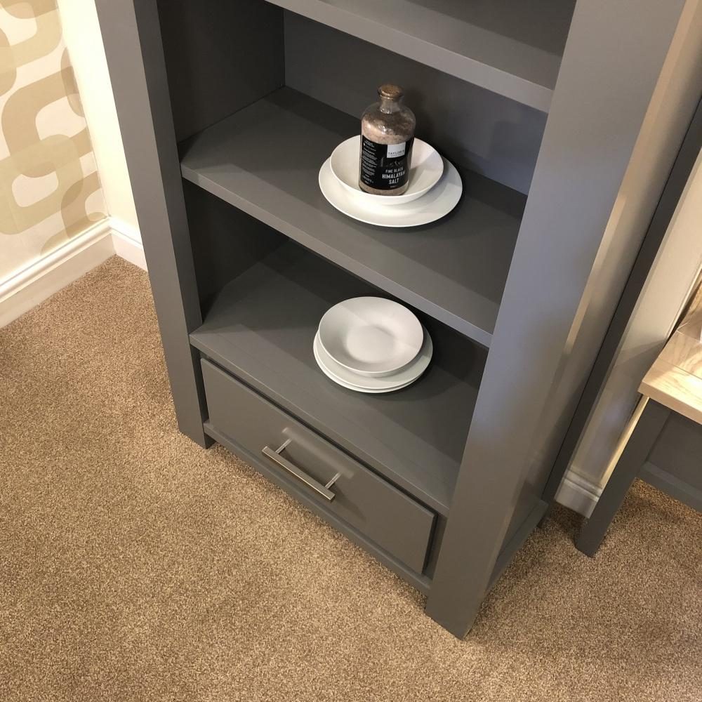 The Oakham collection incorporates a fresh Scandinavian light oak finish on clean solid oak framed tops and veneer insets with a fashionable dark grey pigment on the carcasses. The two sizes of extension tables feature a unique 'pop-up' extension mechanism allowing you to extend the tables with simplicity and ease. All cabinet pieces are fitted with soft close runners together with a choice of sleek satin nickel metal handles and contrasting wooden ones allows you to create a more formal or casual style to suite your look.