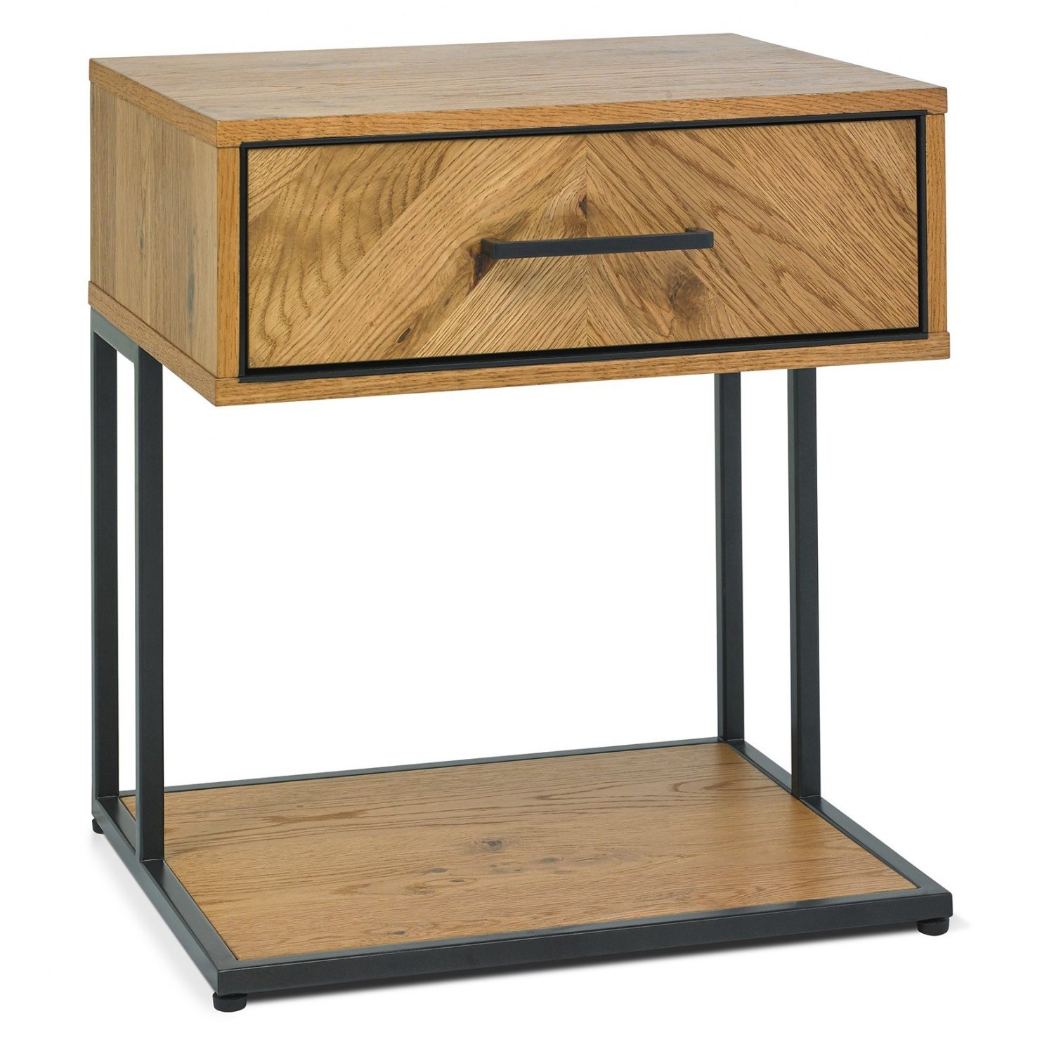 With dynamic zigzagging veneer pattern, Riva Rustic Oak is sure to make a stylish statement in any contemporary bedroom. Consisting of rustic oak veneers that are hand laid in a chevron pattern and oiled to highlight the rich character of oak, this range adds warmth and texture in abundance. Contrasting peppercorn inlay detail within the recesses of the drawers, doors and headboards combine with the peppercorn powder coated metal frames to give the range a slightly industrial edge. Quality mechanisms such as fully extending side mounted soft-close drawer runners add functional finishing touches to Riva's on-trend, mixed-media aesthetic, resulting in a collection that is both practical and stylish.